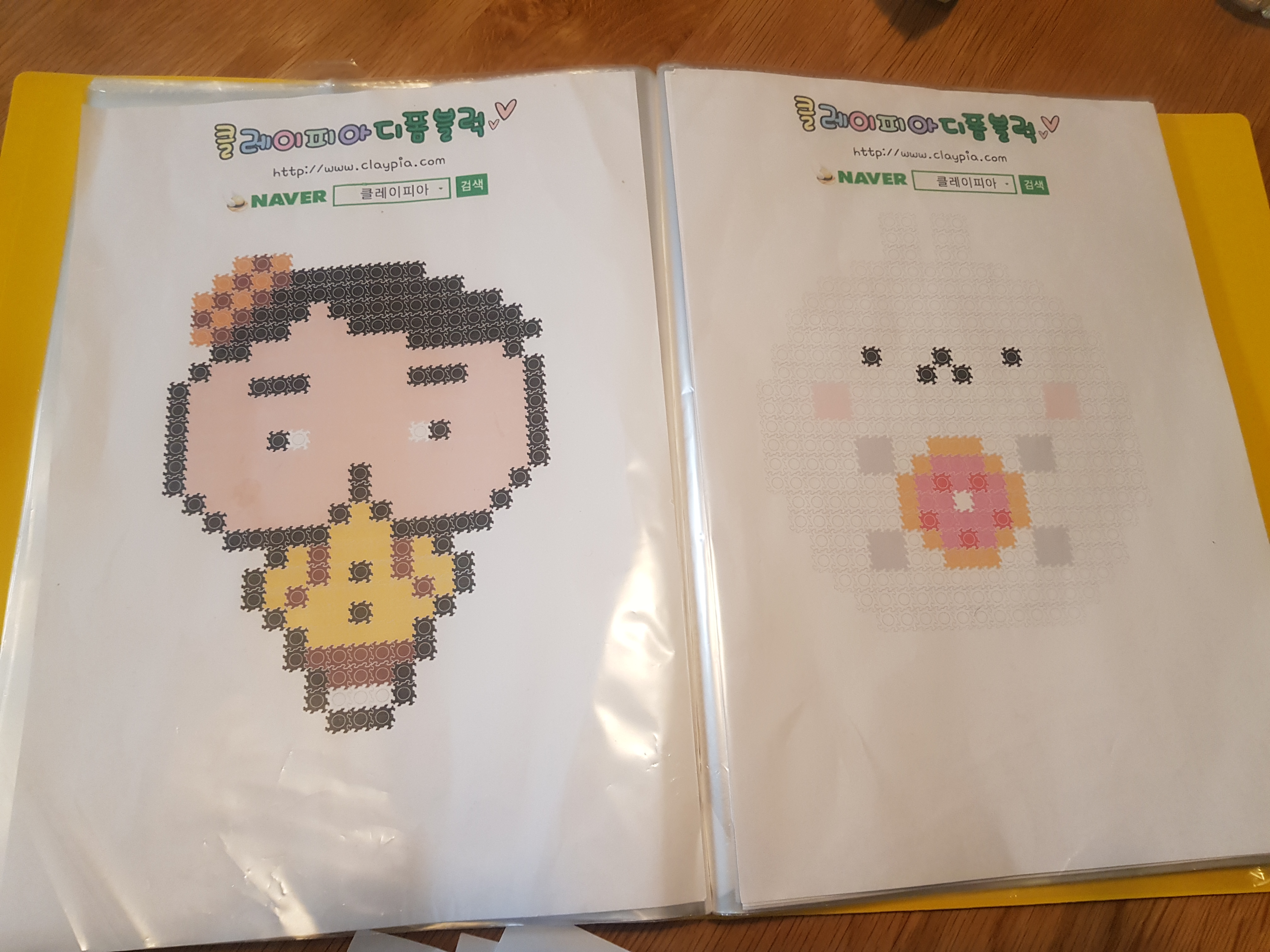 라이언 너무 귀엽죠? 제일 처음 집콕 템으로 시작한 아이템 이랍니다. 라이언 캐릭터들도 다양하게 제공되고 있습니다. 저는 주로 클레이피아에서 도안을 다운받아 프린트 해서 사용하습니다. 하다 하다 디폼 블록 카페 놀이에 들어갑니다. 이렇게 프린트해서 하나하나 파일에 끼워놓으니 아이들이 빼는 재미,넘기는 재미,고르는재미에 너무 좋아하네요^^